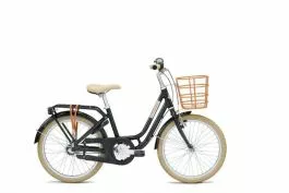 Norden Clara Retro pigecykel, 20″ hjul, i sort med orange aluminiums kurv.