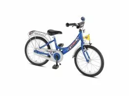 Smart og sej 16 tommer cykel i blå, med fodbold staferinger. Cykler er lavet i aluminium og malet blå i slagfast pulverlakering som gør cykler både let men også flot i mange på. sort for og bagskærm, sort lukket kædeskærm.