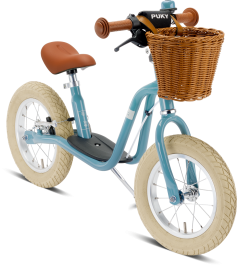 Super flot classic retro løbecykel fra Puky, cyklen er med retro dæk, sadel, håndtag og kurv.